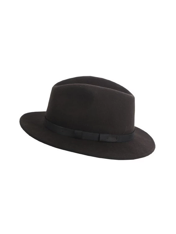 Chapeau laine marron foncé, imperméable avec bande de cuir Composition 100% laine