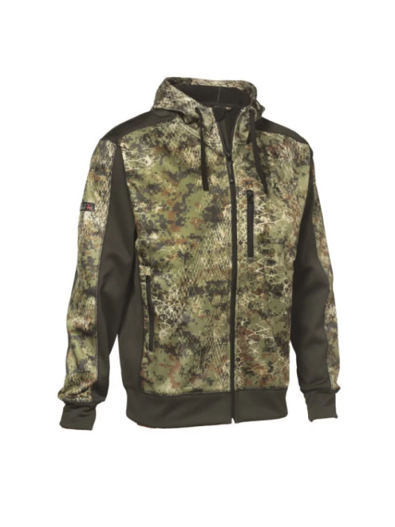 Blouson zippé à capuche de la marque Prohunt avec un camouflage snake forest. Cet habit possède un tissu extérieur en polyester et un intérieur polaire. Le tout a été développé pour demeurer respirant. Prohunt a même prévu une capuche.