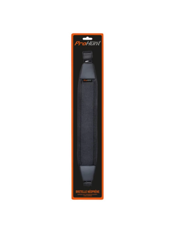 Bretelle à fusil en néoprène avec sangle en nylon et boucle ajustable. Bandoulière ergonomique en néoprène pour absorber les chocs et apporter plus de confort avec une face caoutchoutée pour une meilleure tenue à l épaule. Couleur : Noir