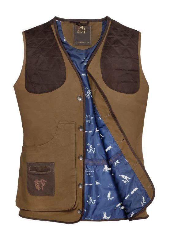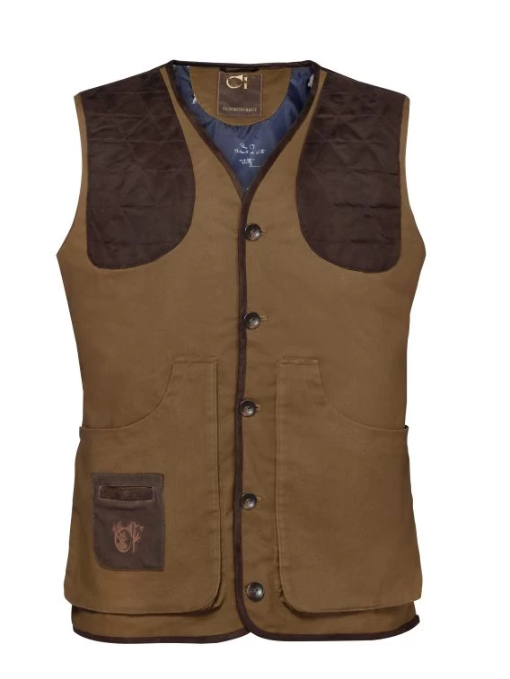 Gilet de chasse 96% coton,4% élasthanne. Empiècement matelassé aux épaules en suédine 100% polyester, doublure 65% polyester