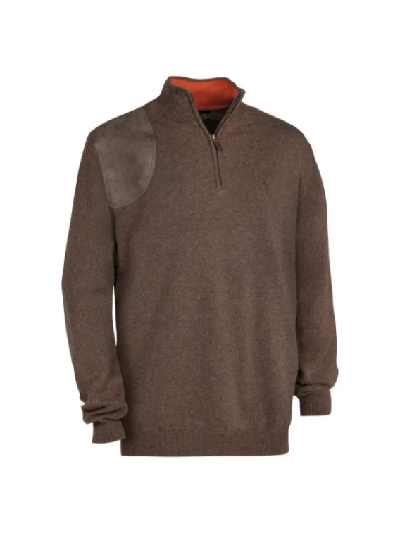 Pull fin,col cheminée zippé,50% laine, 50% coton,coudiÚre en opposition de couleur