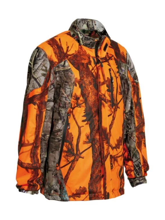 Pour la chasse et la traque, voici une veste qui devrait vous plaire car elle est rĂ©versible. Un cĂŽtĂ© est en camouflage ghostcamo forest alors que l’autre est en ghostcamo orange fluo pour une bonne visibilitĂ©. Cette veste possĂšde un carnier, des cartouchiĂšres et autres poches.